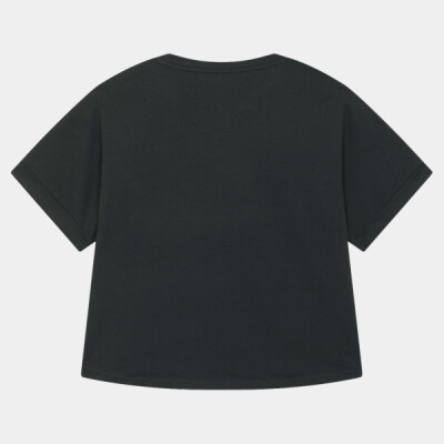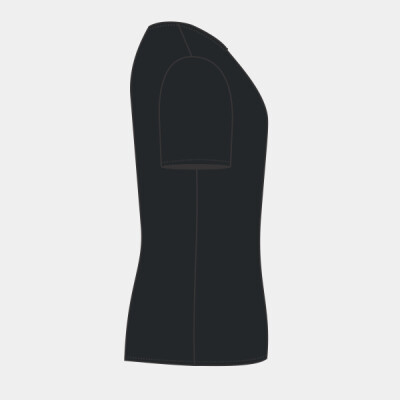 Dolman sleeve. 1x1 rib at neck collar. Inside back neck tape in self-fabric. Sleeve cuff folded with bartacks. Round bottom hem with wide double needle topstitch (back length longer than front length).