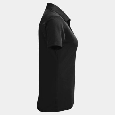 Made with spun dyed certified recycled polyester yarn. Ribbed collar. Three-button placket. Moisture management fabric properties. Side vents.