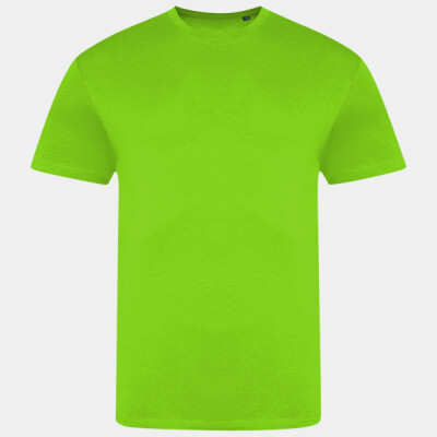 Modern fit. Short sleeves. Side seams. Taped neck. Ribbed crew neck. Twin-needle stitching detail on sleeve and bottom hem. Size label only for easy rebranding - colour coded black for unisex.