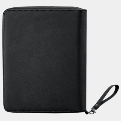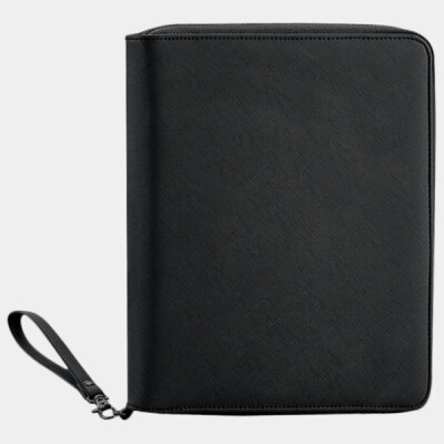 100% leather-look PU. Saffiano fine grain. Soft touch lining. Holds six credit cards. Main zip compartment. Internal zip pocket. Multiple internal pockets. iPad mini™/Tablet compatible. Can be decorated front and rear. Tear out label.