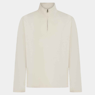 Premium 1/4-zip top, regular fit. Durable piqué front fabric, with brushed back fleece. Antique brass centred zip. Woven collar facing. Flatlocked seams at cuffs. Rear-locker patch. Stepped hem with woven facing. Side vents with herringbone tape. Tag-free for easy rebranding.