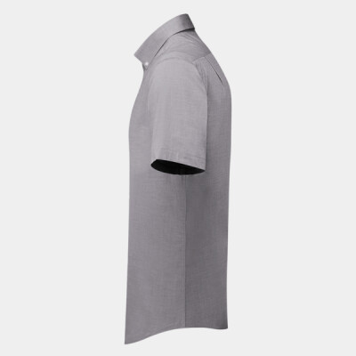 Short sleeve shirt in mercerised cotton, which enhances its overall look, feel and performance. Contains organic cotton and elastane for stretch and shape. Button-down collar. Self-coloured buttons with pearlised buttons on white. Back yoke for fit over the shoulders and back pleats to assist the shape. Curved hemline.